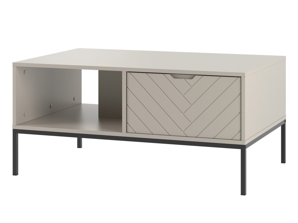 - Matná béžová barva s jemným frézovaným vzorem na dvířkách dodává stolku útulný a moderní vzhled.