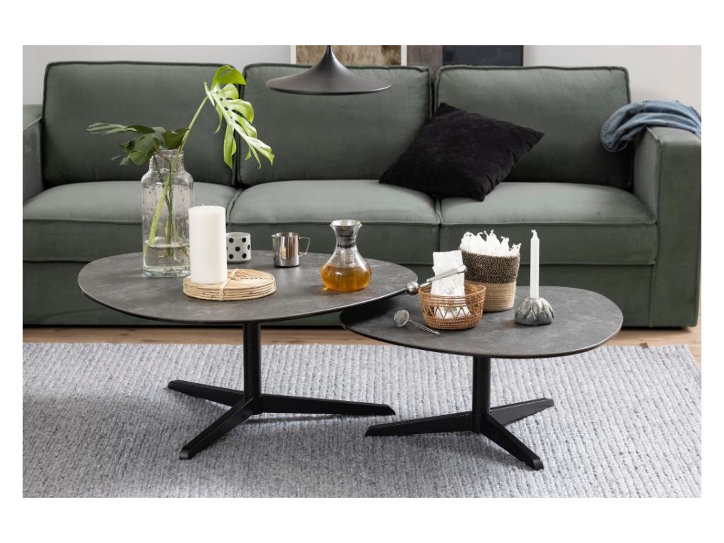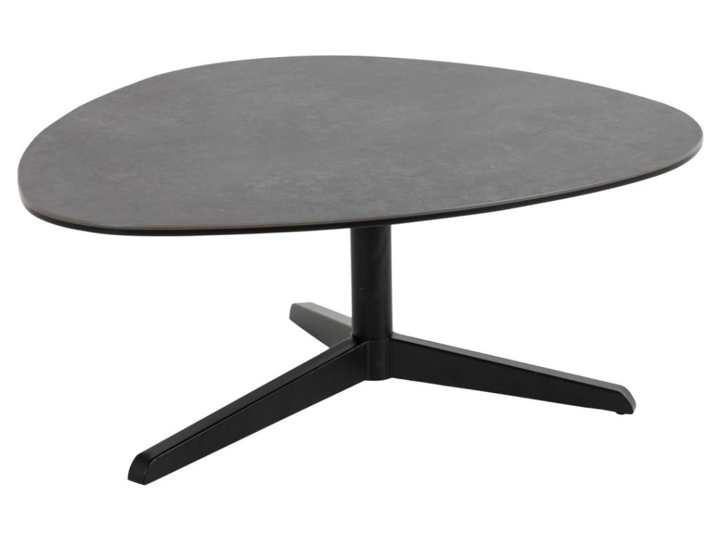 Konferenční stolek Barnsley ve tvaru trsátka spojuje moderní design, eleganci a výjimečnou odolnost. Jeho zakřivená trojúhelníková deska z černé hrubé keramiky Fairbanks působí luxusně a zároveň je mimořádně praktická – keramika je odolná vůči teplu i poškrábání, takže stolek si zachová svůj vzhled i při každodenním používání.
