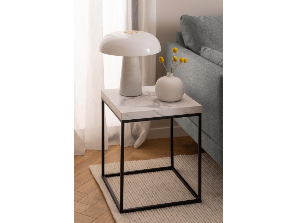 Nejmenší z řady Barossa, ale stále výrazný. Bílý mramorový dekor Carrara v kombinaci s černou podnoží vytváří čistý, moderní vzhled. Ideální jako příruční stolek nebo designový akcent do menších prostor.