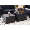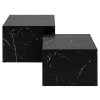 Sada konferenčních stolků Dice z černého mramoru Marquina v hranatém designu je moderním doplňkem každého interiéru. Elegantní čtvercový tvar a kvalitní materiály z MDF imitují luxusní kámen. Sada obsahuje dva stolky různých výšek pro praktické využití. Skvěle se hodí do obývacího pokoje nebo k sedací soupravě.