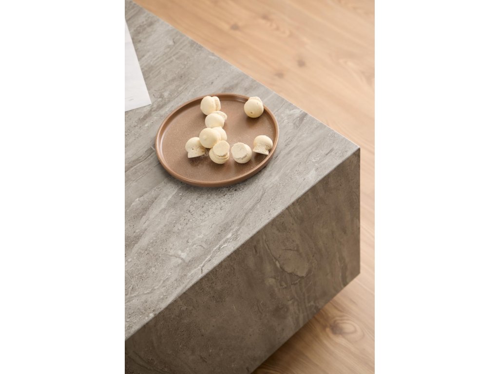 Hledáte-li výrazný doplněk s architektonickým nádechem, stolek Kostky je pro vás jako stvořený. Jeho čtvercový formát a mramorový vzhled v šedém odstínu působí moderně a zároveň nadčasově. Stolek působí jakoby levitoval – díky nízké, téměř neviditelné základně, která podtrhuje jeho styl.