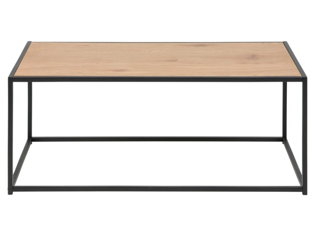 Stolík Seaford s dubovým dekorem a černým rámem působí přirozeně a moderně. Hranatý tvar a praktické rozměry jej předurčují k využití v obývacím pokoji. Povrch je snadno udržovatelný.