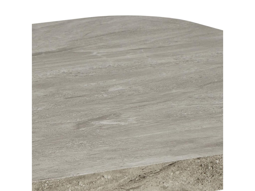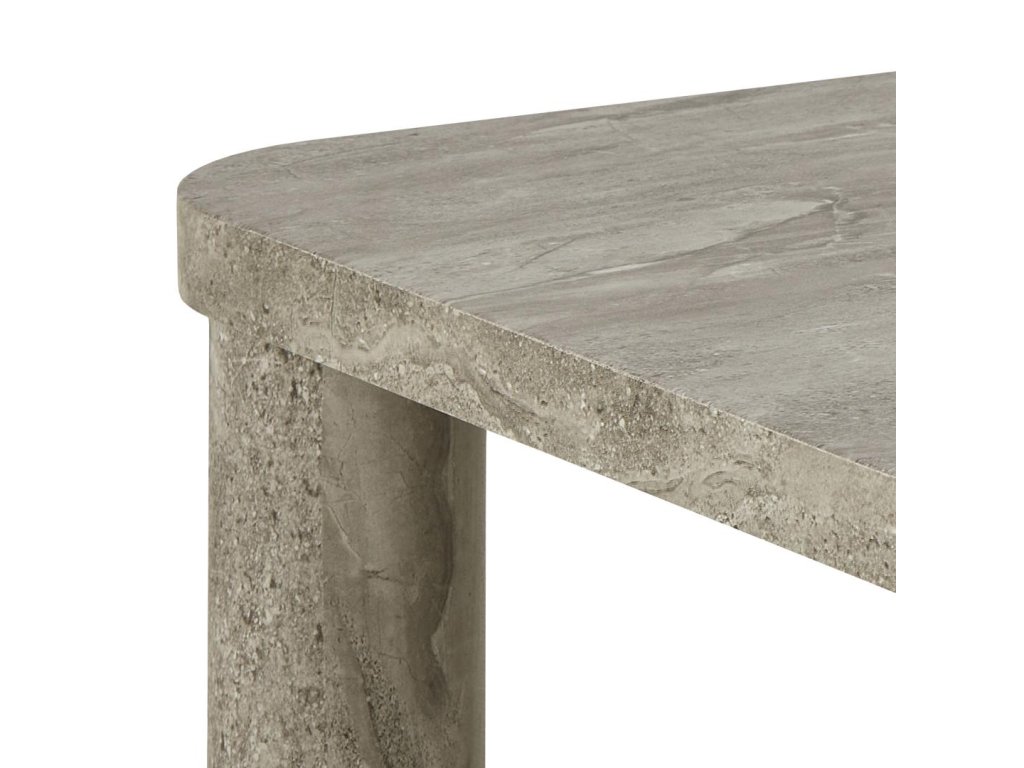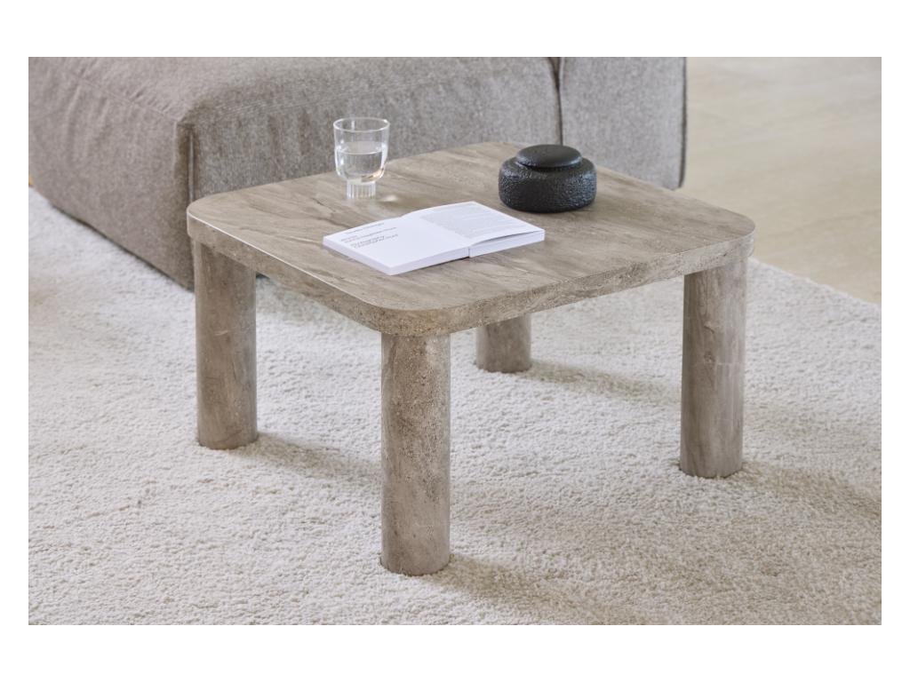 Vyrobený z drsného papíru s mramorovým potiskem, stolek imituje vzhled přírodního kamene, přičemž si zachovává lehkost a praktičnost. Šedý mramorový dekor působí decentně, ale zároveň moderně a snadno se kombinuje s různými typy sedaček a barevnými schématy.