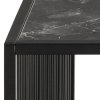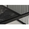 Tento konferenční stolek z kolekce Strington ve čtvercovém provedení nabízí harmonickou rovnováhu mezi geometrickou čistotou a designovým kontrastem. Stolová deska je rozdělena na dvě části – jedna je z kouřového tvrzeného skla, druhá z matného černého melaminu v dekoru Izmir s mramorovým vzhledem. Boky stolku doplňují zaoblené, svislé kovové lamely, které zvýrazňují jeho architektonický charakter a zároveň zajišťují vizuální lehkost. Kompaktní rozměr činí ze stolku ideální řešení do menších obývacích prostor nebo jako doplněk k většímu kusu ze stejné kolekce.