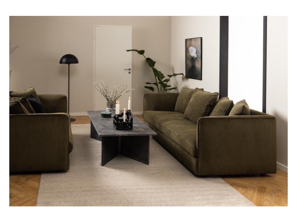 S rozměry 140 × 70 × 42 cm nabízí stolek dostatek prostoru pro dekorace, knihy i občerstvení, přičemž matný lakovaný povrch podtrhuje přirozenou krásu mramoru. Konstrukce ve tvaru V zajišťuje stabilitu a zároveň vytváří vizuálně snadný dojem.