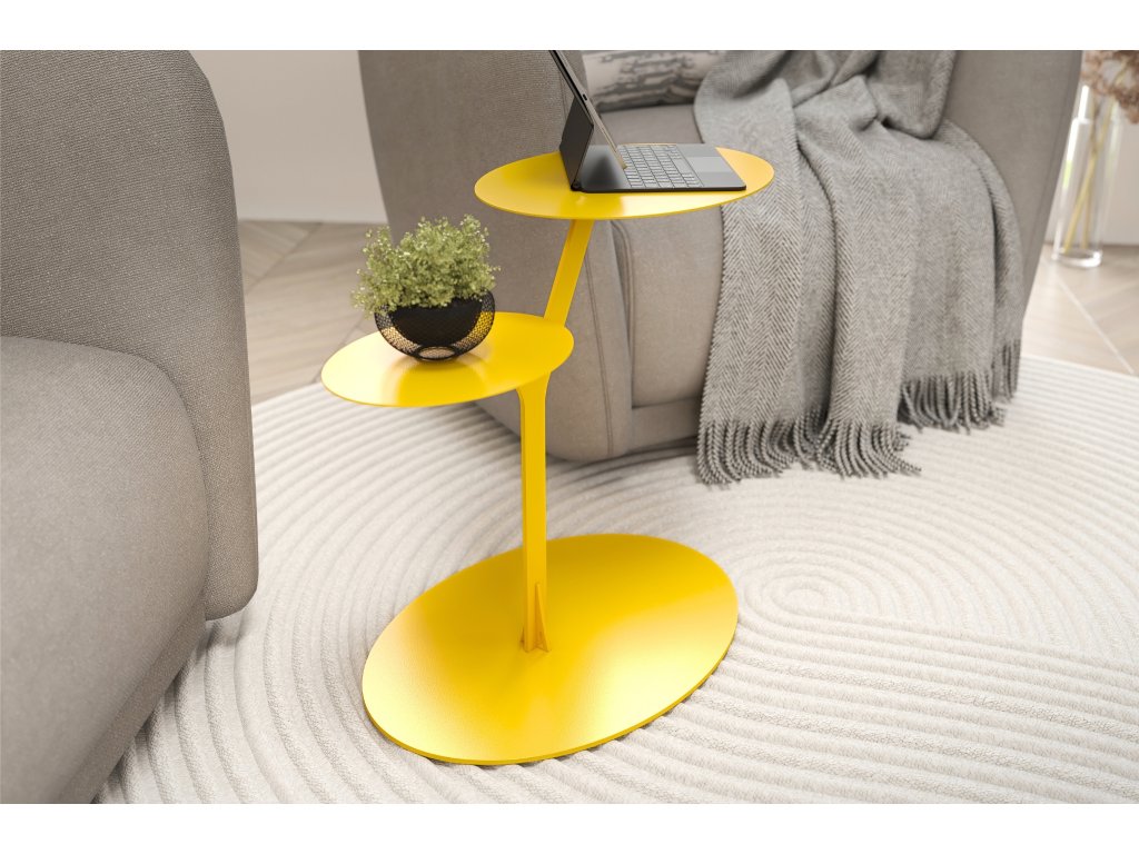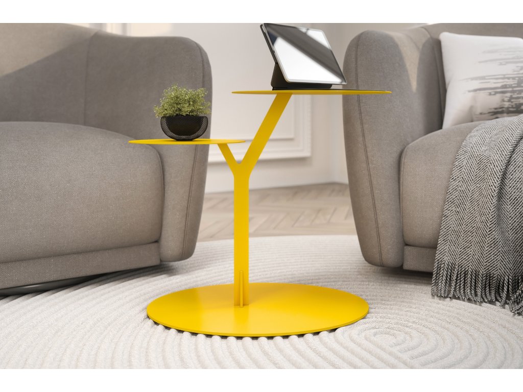 Žlutý stolek Iroko vnese do prostoru radost, optimismus a špetku extravagance. Díky syté barvě a jemnému tvarování působí stolek energicky, ale zároveň zachovává designovou eleganci. Je výborným řešením do moderních nebo hravých interiérů. Kromě vizuálního efektu nabízí pevný, stabilní základ a praktický dvouúrovňový odkládací prostor.