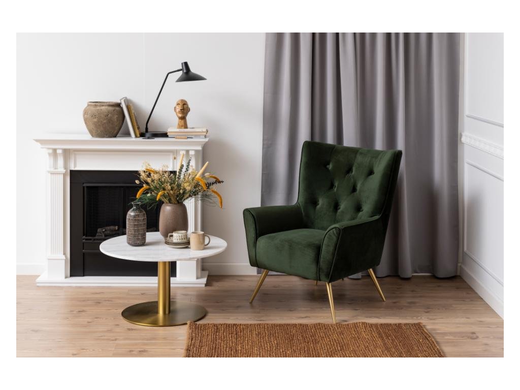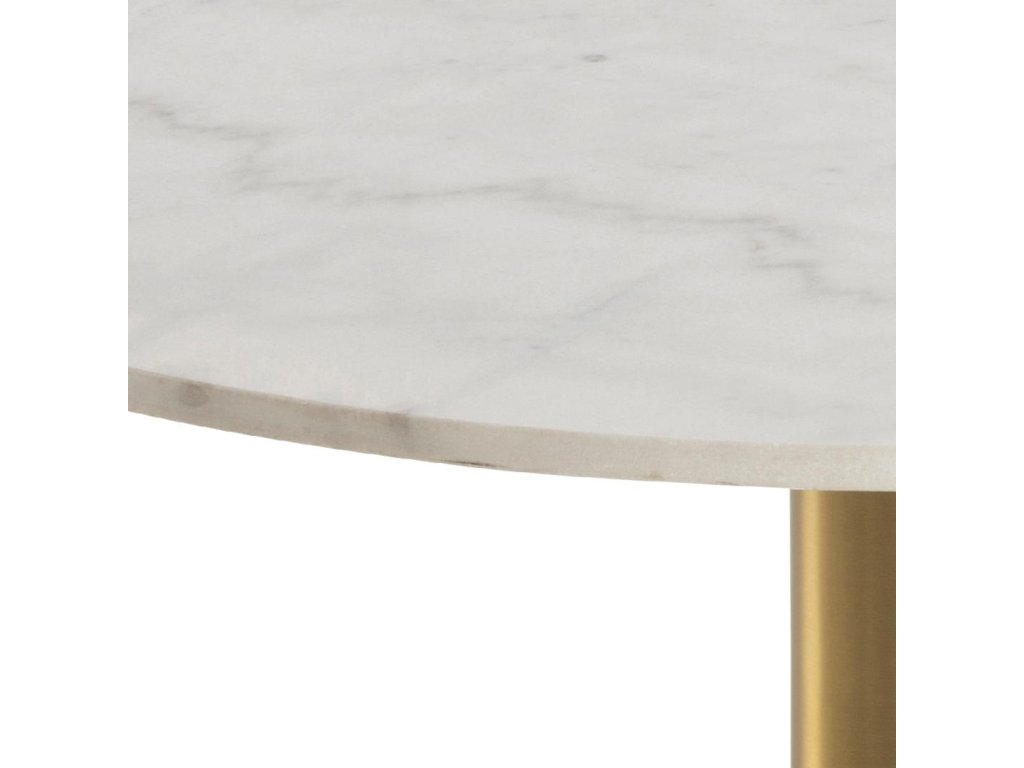 Stolek Corby s bílým mramorovým povrchem a zlatou kovovou základnou přináší luxus a jemnou eleganci do každého prostoru. Kulatý tvar působí harmonicky a vhodně doplňuje moderní i klasické interiéry.