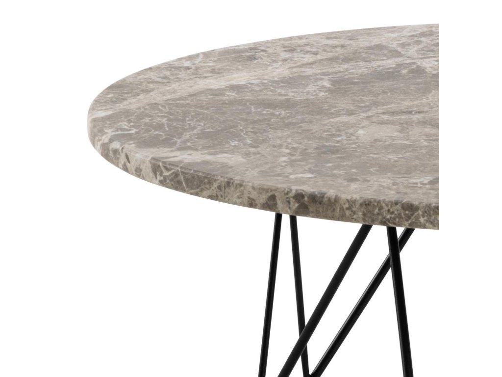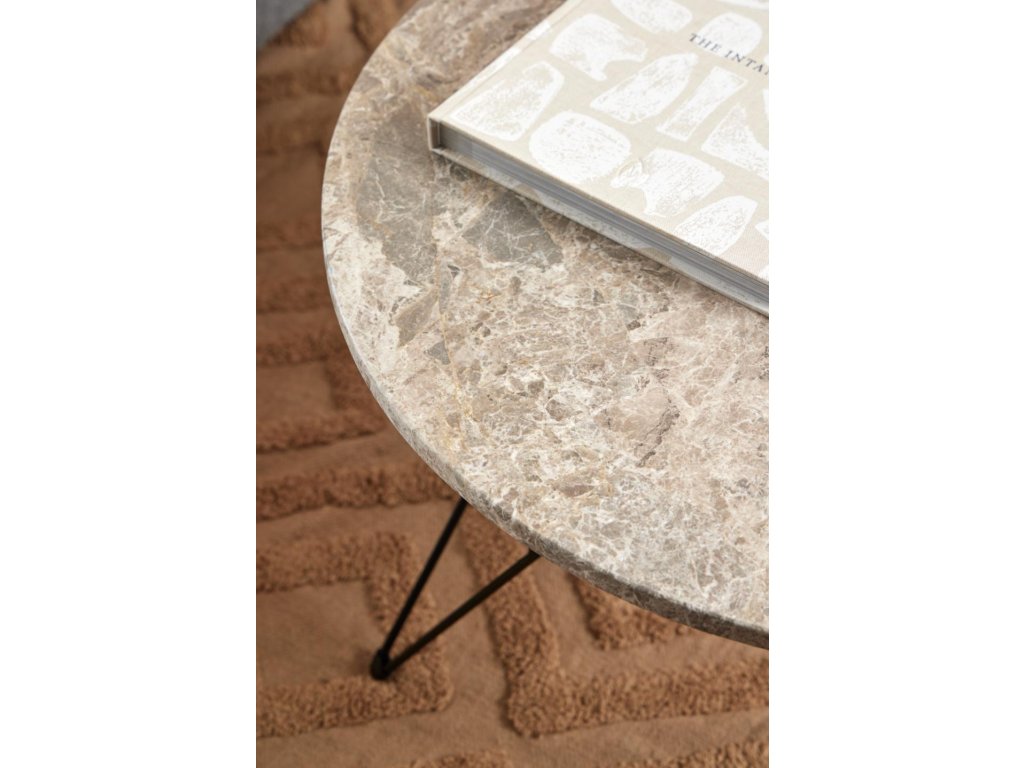 Vystupte z davu s konferenčním stolkem, který kombinuje přirozenou krásu mramoru se silným černým akcentem. Matná šedohnědá deska s realistickým vzhledem kamene dodává prostoru eleganci, zatímco drátěná podnož v matné černé barvě mu propůjčuje moderní charakter. Výsledkem je harmonický a zároveň kontrastní prvek, který doplní moderní i industriální interiér.