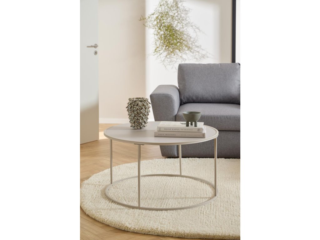 Kulatý konferenční stolek Seaford kombinuje moderní industriální styl s teplým šedým provedením. Stolní deska z drsného šedého melaminu a tenká kovová základna s práškovým nástřikem vytvářejí harmonický, stabilní a univerzální kousek, který snadno doplní jakoukoli sedačku či obývací pokoj.