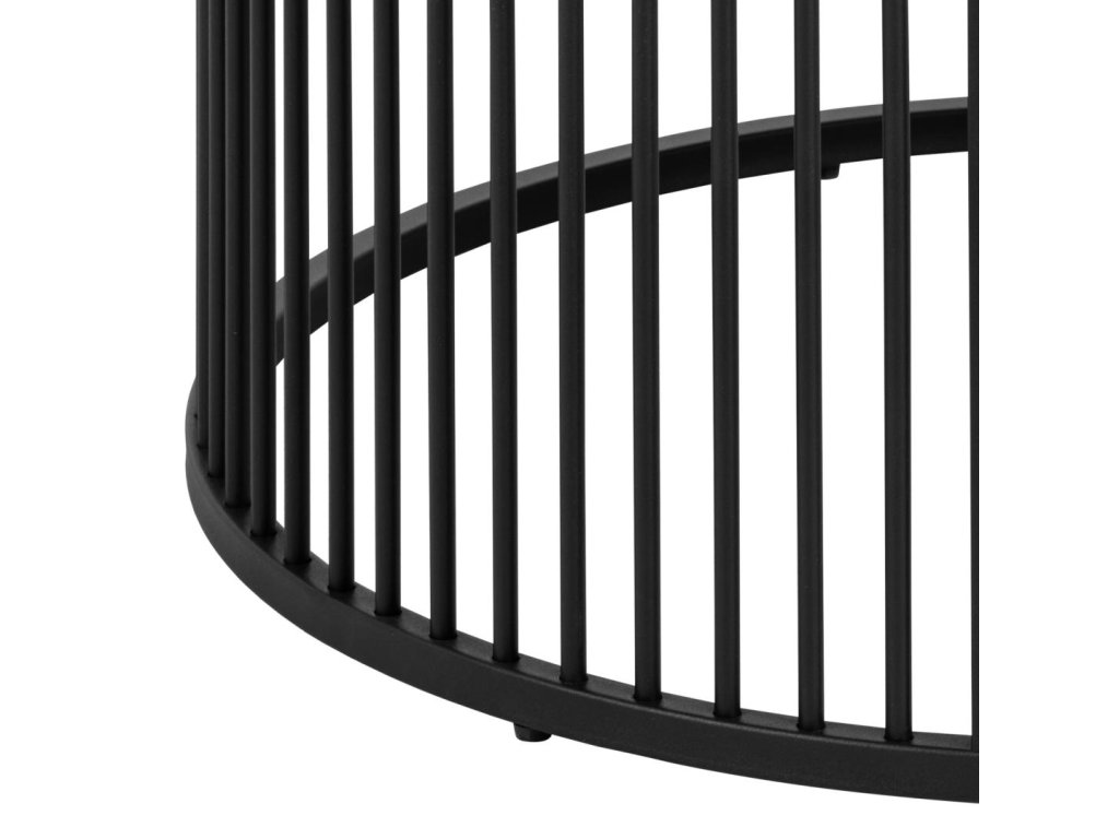 Stolek Strington zaujme čistým designem a funkčností. Černý melaminový povrch a drátěná konstrukce vytvářejí nadčasový vzhled. Skvělý pro odkládání časopisů nebo dekorací. Výborně zapadne do moderního i industriálního interiéru.