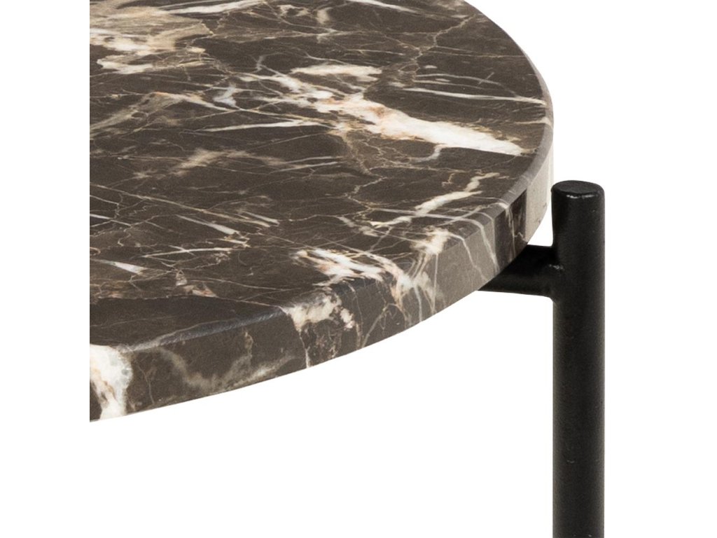 Kulatý příruční stolek Avila 42 - hnědý mramor / černá