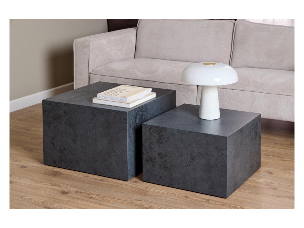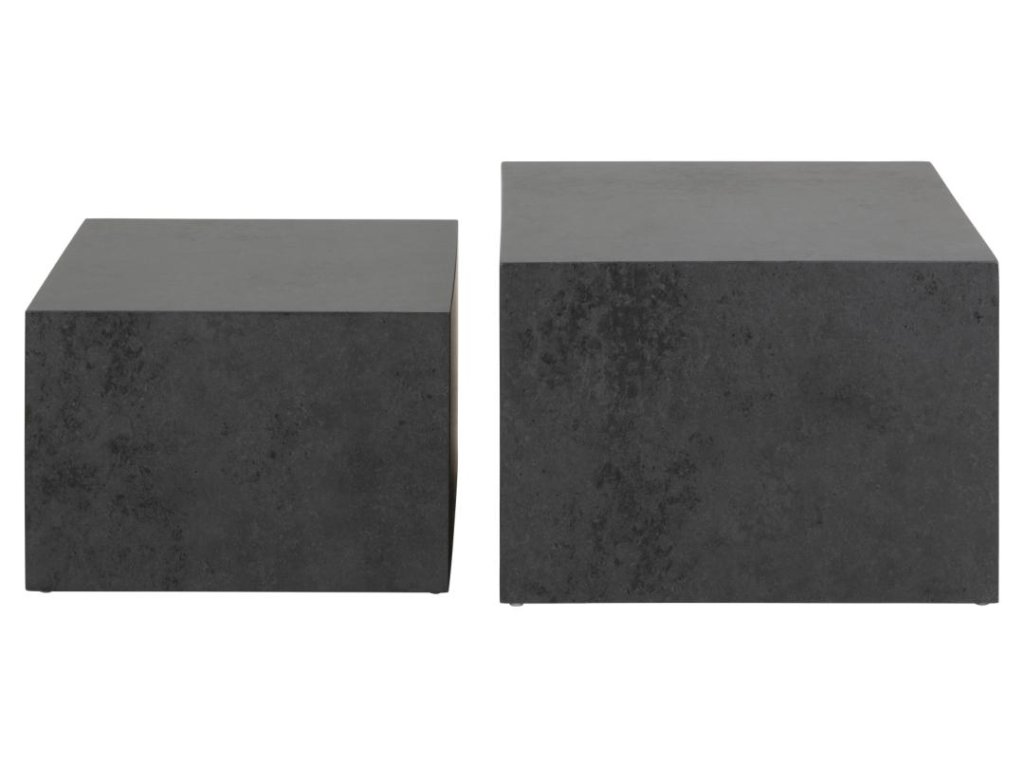 Černá souprava Dice přinese do obývacího pokoje výrazný a stylový prvek. Robustní design a praktické rozměry zaručují všestranné využití. Hodí se do industriálních prostor. V balení jsou 2 kusy s různou výškou.