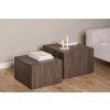 Set Dice v dekoru uzeného dubu působí přírodně a elegantně. Dva různé rozměry umožňují variabilní uspořádání. Čtvercový tvar je ideální pro dekorace, lampy či knihy. Vhodné do rustikálního i moderního interiéru.