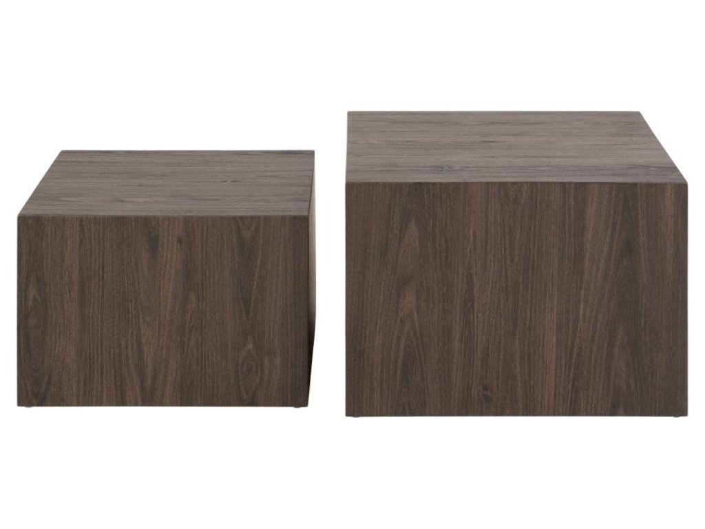 Set Dice v dekoru uzeného dubu působí přírodně a elegantně. Dva různé rozměry umožňují variabilní uspořádání. Čtvercový tvar je ideální pro dekorace, lampy či knihy. Vhodné do rustikálního i moderního interiéru.