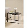 Minimalistická elegance a kontrastní kombinace materiálů – to je sada konferenčních stolků Katrine. Dva čtverecné stolky různých výšek s keramickou deskou v černém odstínu Fairbanks a pevným kovovým rámem vytvářejí funkční i stylový doplněk. Matná černá ocel se sáním podstavcem dodává stabilitu a industriální vzhled. Lze je použít spolu i samostatně.