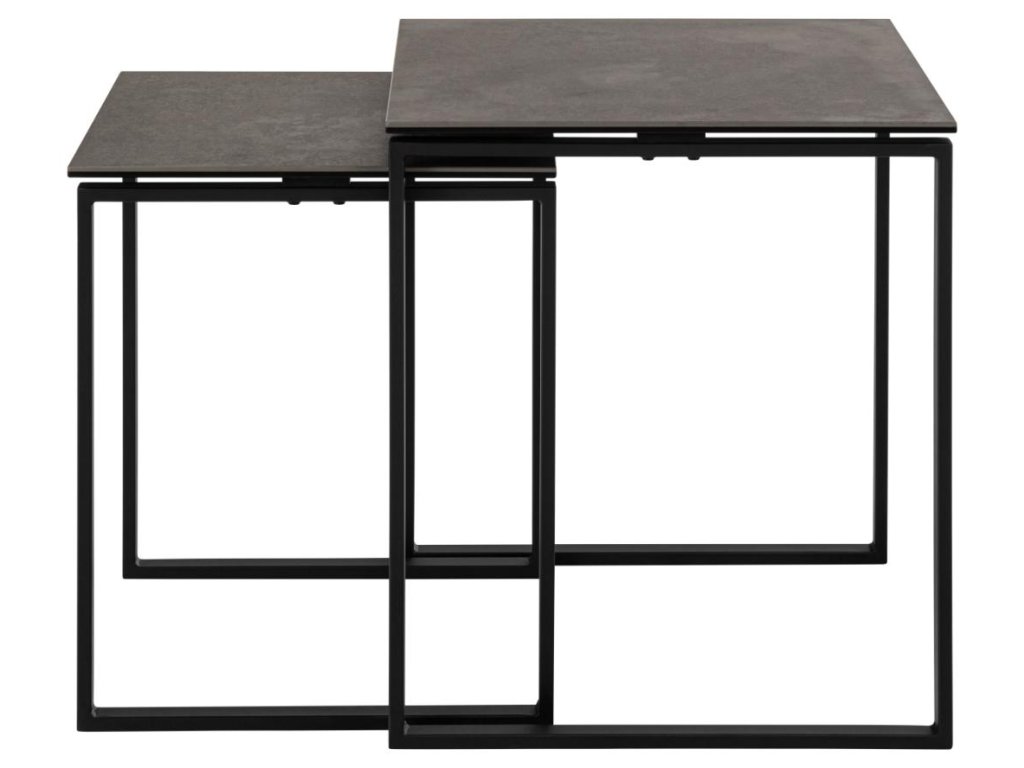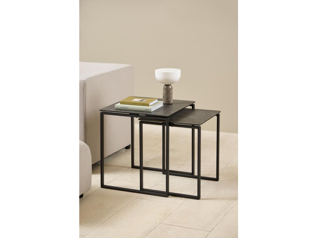 Minimalistická elegance a kontrastní kombinace materiálů – to je sada konferenčních stolků Katrine. Dva čtverecné stolky různých výšek s keramickou deskou v černém odstínu Fairbanks a pevným kovovým rámem vytvářejí funkční i stylový doplněk. Matná černá ocel se sáním podstavcem dodává stabilitu a industriální vzhled. Lze je použít spolu i samostatně.