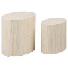Mice set dvou oválných konferenčních stolků přináší jemné linie a přirozenou strukturu. Povrch z béžového travertinu dodává eleganci, zatímco kompaktní rozměry umožňují snadné uspořádání v každém prostoru. Ideální jako dekorativní i funkční prvek do obývacího pokoje.