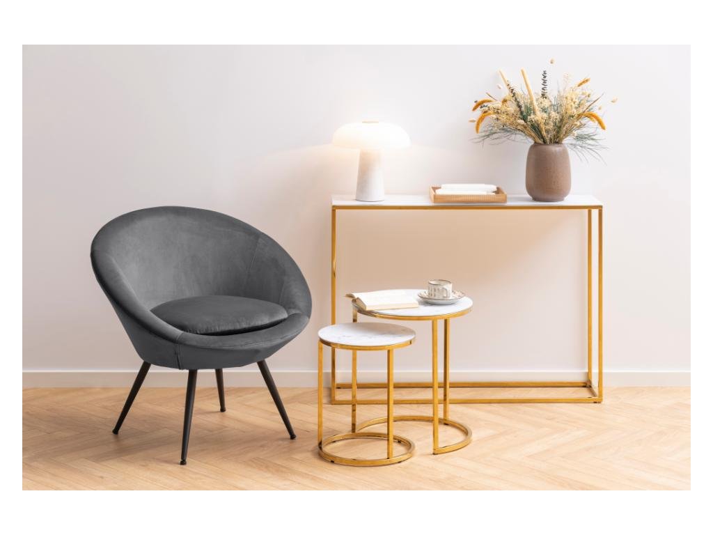 Konzolový stolek Alisma nabízí elegantní spojení luxusního vzhledu mramoru a moderní kovové podnože. Deska z bílého křišťálově čirého mramoru Rome působí exkluzivně a dodá prostoru světlost, zatímco chromovaná ocelová základna zajišťuje stabilitu a lesklý designový kontrast. Díky úzkému profilu je ideální do chodby, obývacího pokoje či ložnice, kde poskytne prostor pro dekorace, lampu nebo odkládání drobností. Stolek je zároveň snadný na údržbu a perfektně doplní moderní či glamour interiér.