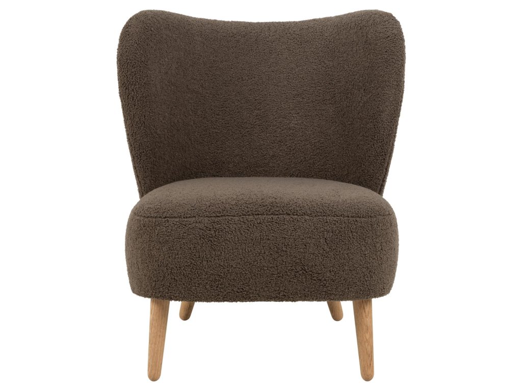 Elmont křeslo kombinuje komfort čalounění s elegancí dřeva. Hnědý textilní potah doplňuje olejovaná dubová konstrukce a taštičkové pružiny zajišťují příjemné sezení.