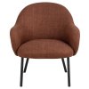 Křeslo Spencer v hnědo-černé kombinaci nabízí pohodlí a styl v jednom. Měkké čalounění v odstínu terakoty kontrastuje s černou ocelovou základnou. Vhodné jako designový prvek do obývacího pokoje, čítárny nebo ložnice. Minimalistické linie podtrhují moderní vzhled.