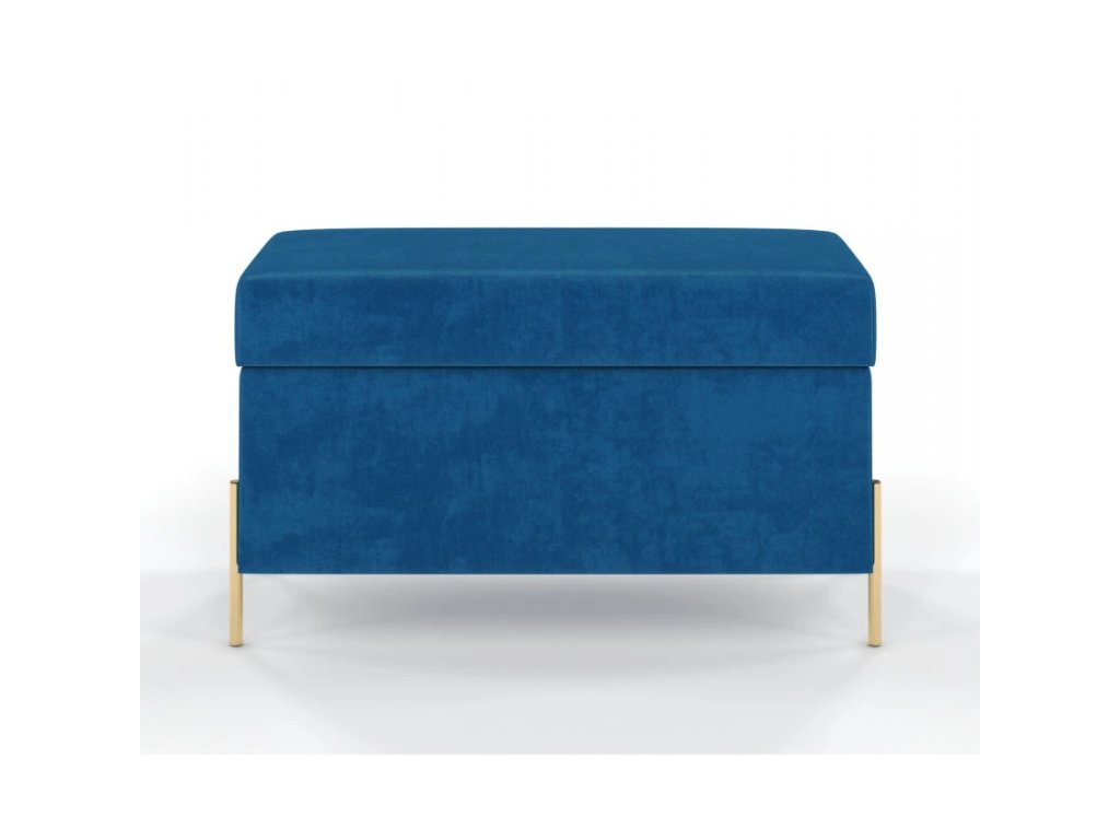 Modrá taburetka s úložným prostorem Borgo vynikne v každé předsíni a chodbě. Do interiéru vnese elegantní nádech s kouskem extravagance. Taburetka disponuje úložným prostorem, do kterého vložíte čepice, rukavice, šály nebo jiné drobnosti. Moderní design se zlatými nožičkami přitáhne oči všech návštěvníků.