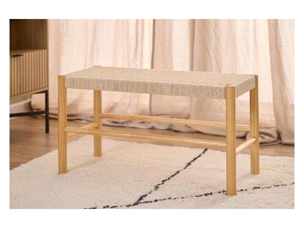 S kompaktními rozměry 80×35×45 cm se lavice hodí téměř kamkoli – do předsíně, ložnice, obývacího pokoje i jídelny. Je lehká, všestranná a díky svému designu může sloužit jako estetický doplněk, odkládací plocha nebo praktické sezení až pro dvě osoby. Přináší do domova teplo a řemeslný nádech, který nikdy nevyjde z módy.
