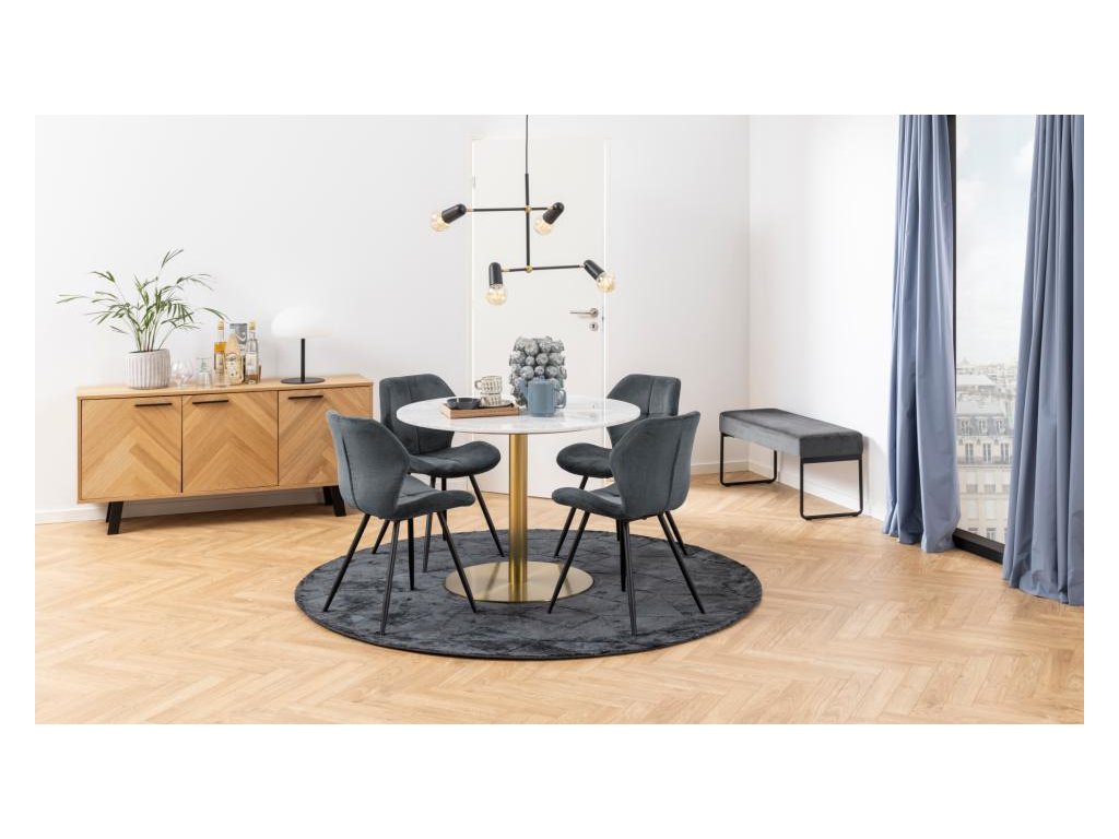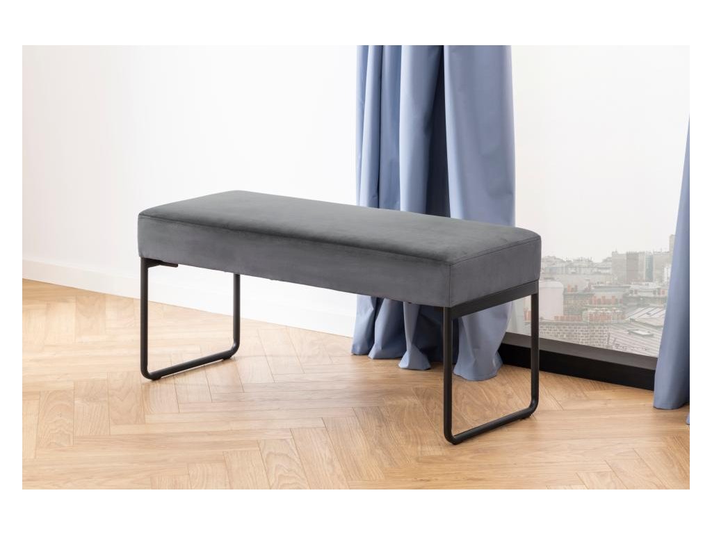 Lavice Xenia, 95x38x46 cm, je elegantním doplňkem, který se hodí téměř do každé místnosti v domácnosti. Její čalounění z látky Vic 28 v tmavě šedé barvěvytváří zářivý a bohatý vzhled díky jemnému sametu, který mění odstín podle dopadu světla. Tenké nohy ve tvaru saní z černé práškově lakované oceli dodávají industriální charakter a zároveň zajišťují stabilitu. Tato moderní a pohodlná lavice pohodlně usadí 2 osoby a díky plochému balení se snadno přepravuje i instaluje.