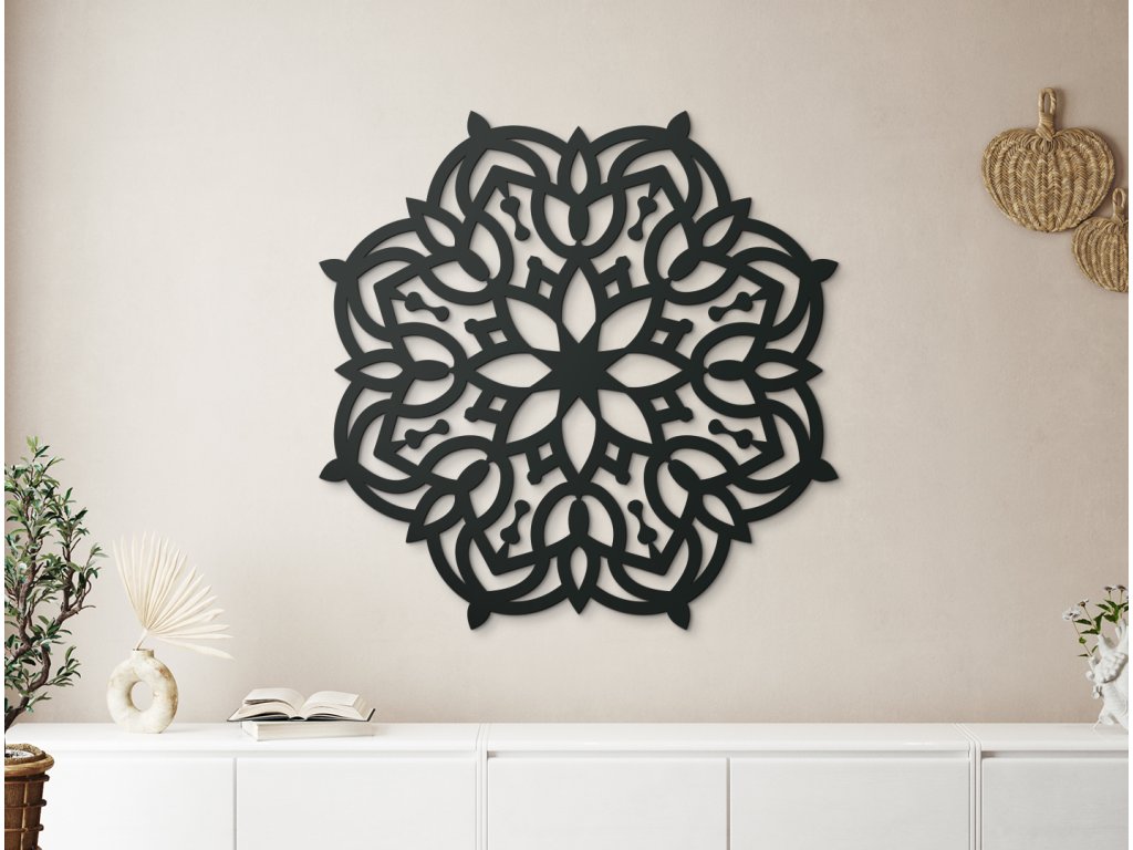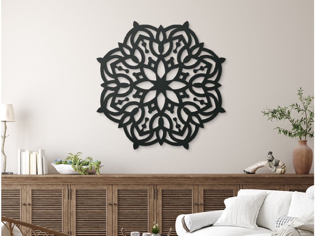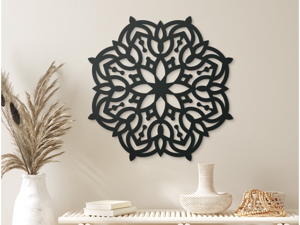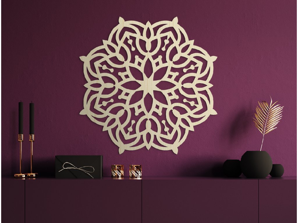 Nádherně vyřezávaný design z kvalitní HDF desky zobrazuje mandalu s motivem přírodního růstu, který ztělesňuje obnovu, vitalitu a neustálý pohyb života. Každý detail mandaly je precizně zpracován, čímž dodává prostoru pocit harmonie a klidu.