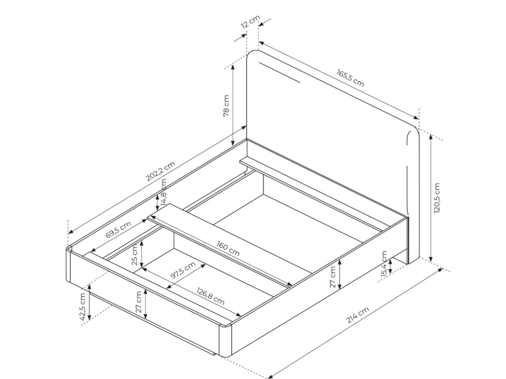 Manželská postel o rozměru 160 x 200 cm disponuje velkým úložným prostorem. Postel je v příjemné béžové barvě. Čelo postele je čalouněné a je ve stejném odstínu jako celá postel.