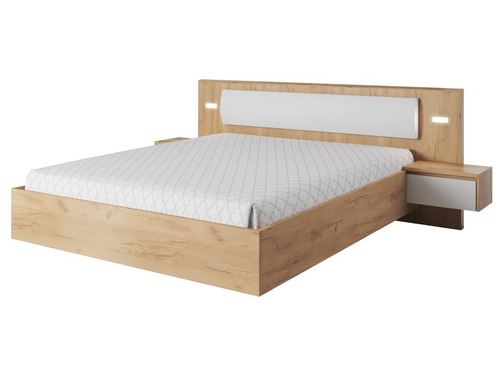 Manželská postel s nočními stolky a osvětlením Xelo G – bílá / dub craft zlatý