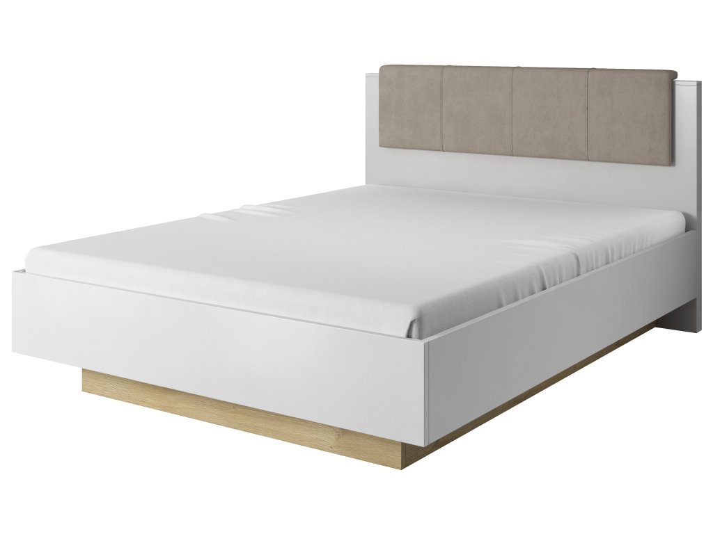 Postel Arcon s úložným prostorem v barvě bílý lesk / dub grandson o rozměrech 160 × 200 cm nabízí čalouněné čelo v jemně hnědé barvě a praktický úložný prostor s kovovým zvedacím roštem. Elegantní vzhled a funkční řešení dělají z této postele ideální volbu pro moderní ložnice.