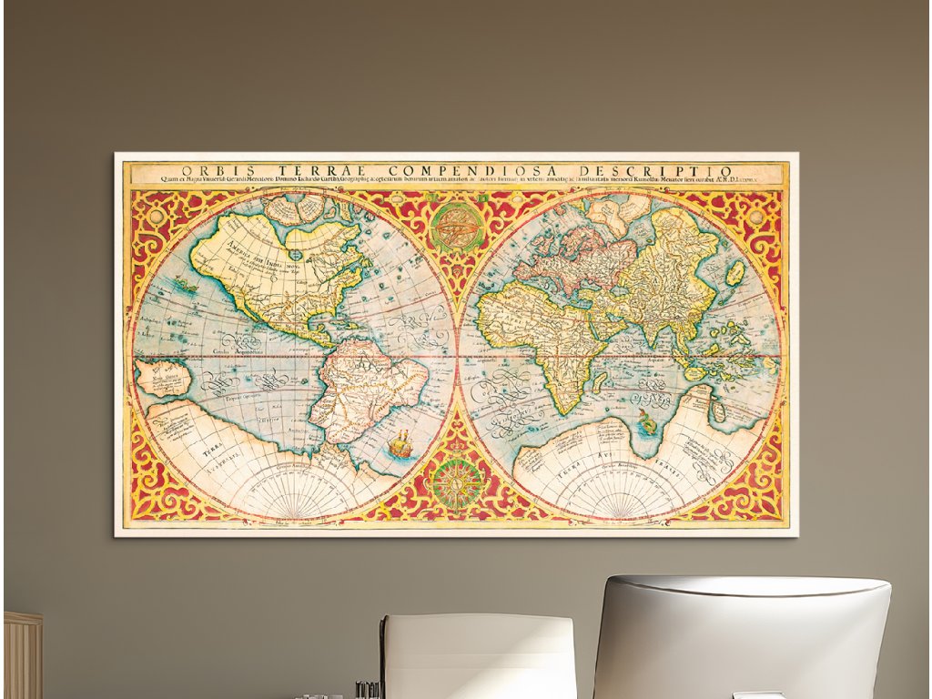 Historická mapa Orbis Terrae Compendiosa Descriptio (Rozměr obrazu 53 x 95 cm, Povrchová úprava 3D)