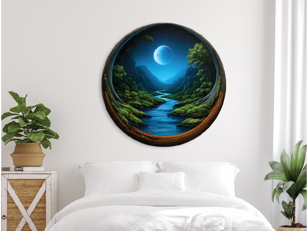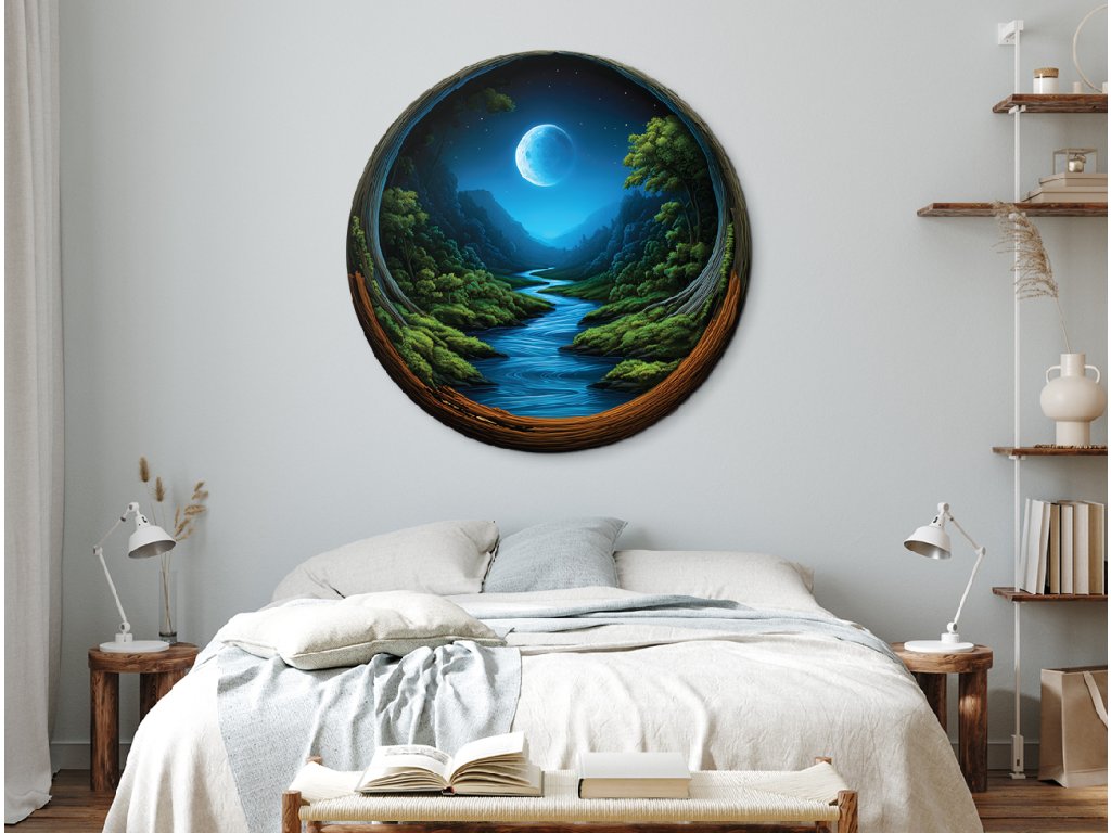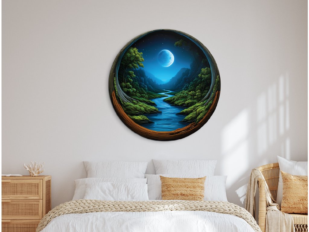 Kulatý mechový obraz Noční soulad (UV tisk)
