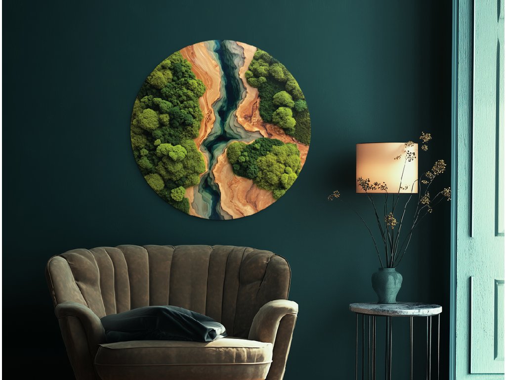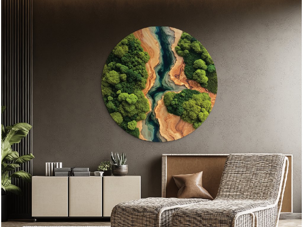 Kulatý mechový obraz Řeka (UV tisk)