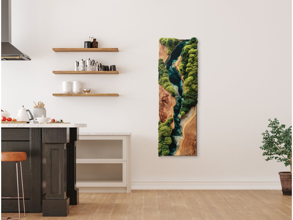 Vychutnejte si pohled na mechový obraz Dotek přírody (UV tisk), který působí jako živý, ale bez nutnosti polévání či světla. Realistická imitace mechu i poutavého epoxidu je nejen cenově dostupnější, ale také trvalejší než originál. Váš prostor získá stylový designový prvek s dlouhou životností a nulovou údržbou. Tento obraz je ideálním řešením pro moderní domov nebo kancelář.