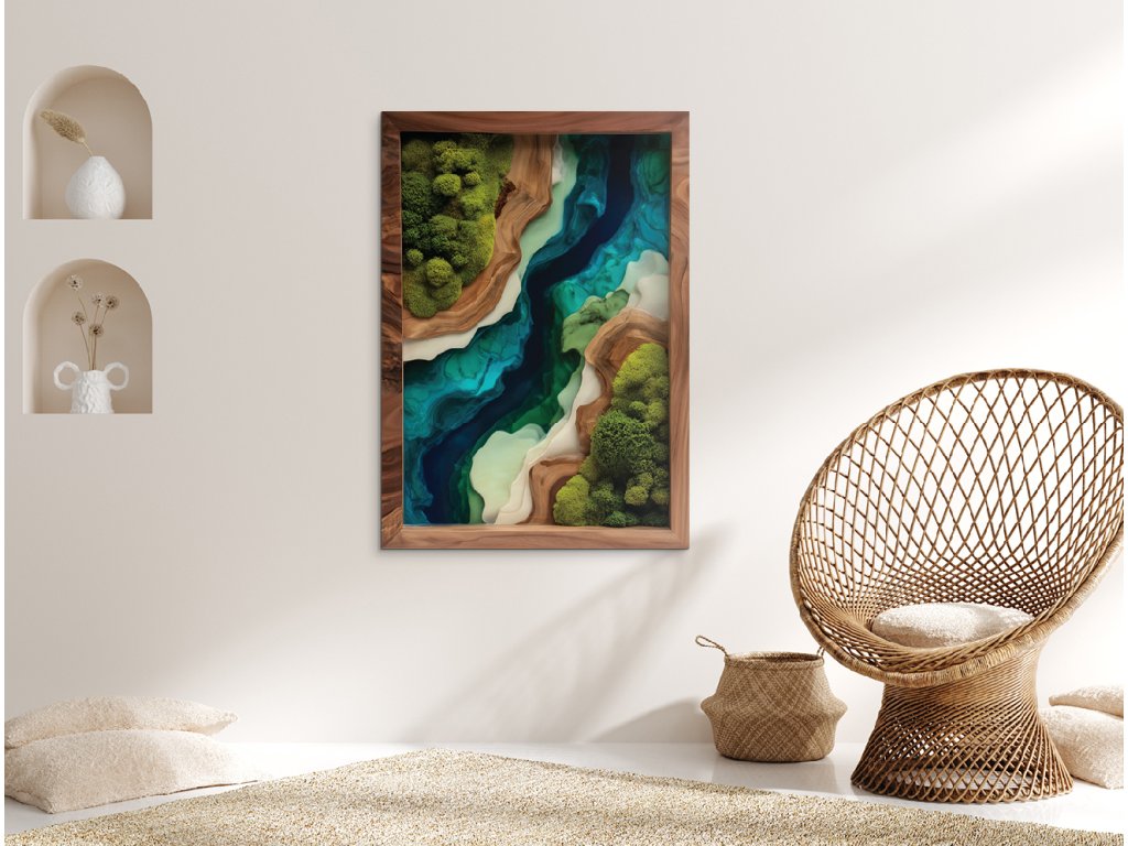 Vychutnejte si pohled na mechový obraz Laguna (UV tisk), který působí jako živý, ale bez nutnosti polévání či světla. Realistická imitace mechu i poutavého epoxidu je nejen cenově dostupnější, ale také trvalejší než originál. Váš prostor získá stylový designový prvek s dlouhou životností a nulovou údržbou. Tento obraz je ideálním řešením pro moderní domov nebo kancelář.