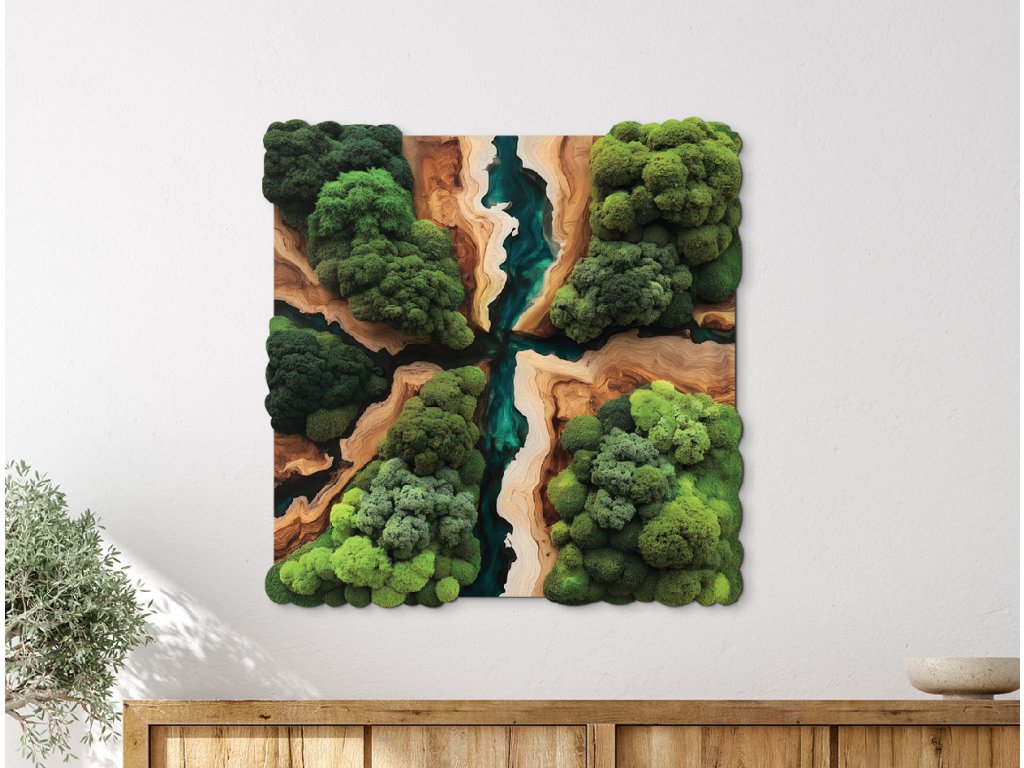 Vychutnejte si pohled na mechový obraz Smaragdový tok (UV tisk), který působí jako živý, ale bez nutnosti polévání či světla. Realistická imitace mechu i poutavého epoxidu je nejen cenově dostupnější, ale také trvalejší než originál. Váš prostor získá stylový designový prvek s dlouhou životností a nulovou údržbou. Tento obraz je ideálním řešením pro moderní domov nebo kancelář.
