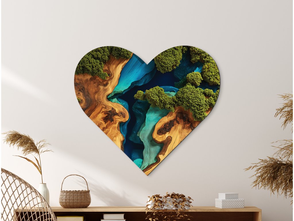 Vychutnejte si pohled na srdcový mechový obraz Břehy, který působí jako živý, ale bez nutnosti polévání či světla. Realistická imitace mechu i poutavého epoxidu je nejen cenově dostupnější, ale také trvalejší než originál. Váš prostor získá stylový designový prvek s dlouhou životností a nulovou údržbou. Tento obraz je ideálním řešením pro moderní domov nebo kancelář.