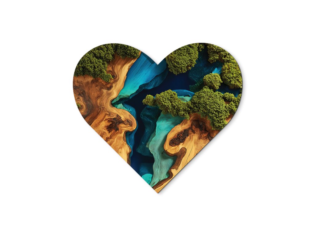 Srdcový mechový obraz Břehy (UV tisk)