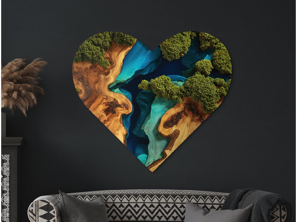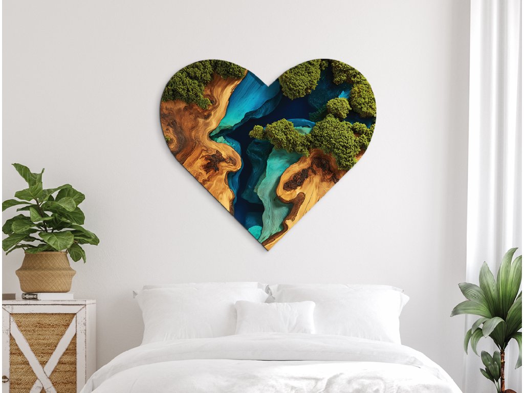 Vychutnejte si pohled na srdcový mechový obraz Břehy, který působí jako živý, ale bez nutnosti polévání či světla. Realistická imitace mechu i poutavého epoxidu je nejen cenově dostupnější, ale také trvalejší než originál. Váš prostor získá stylový designový prvek s dlouhou životností a nulovou údržbou. Tento obraz je ideálním řešením pro moderní domov nebo kancelář.