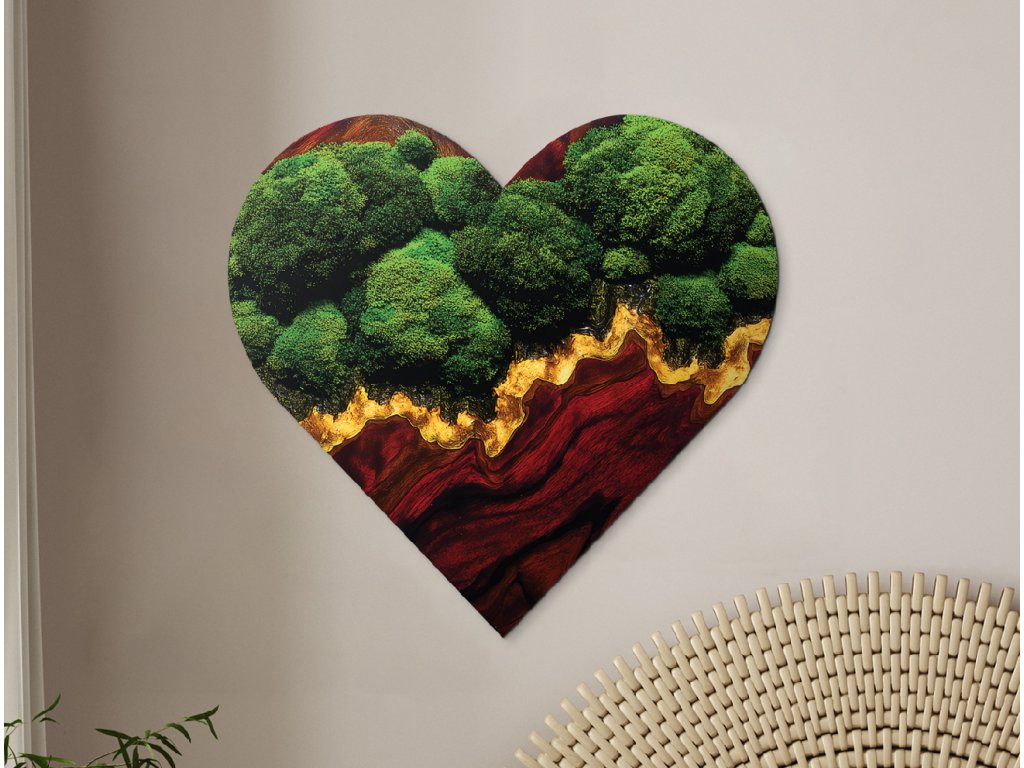 Srdcový mechový obraz Spojení – (UV tisk) přinese do vašeho interiéru dokonalou imitaci živého mechu. Díky moderní UV technologii získáte realistický 3D efekt bez potřeby péče. Tento obraz si zachová svěží vzhled po celá léta a stojí méně než klasická mechová díla. Vyberte si originální kousek, který spojuje krásu přírody s praktičností.