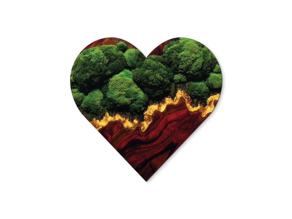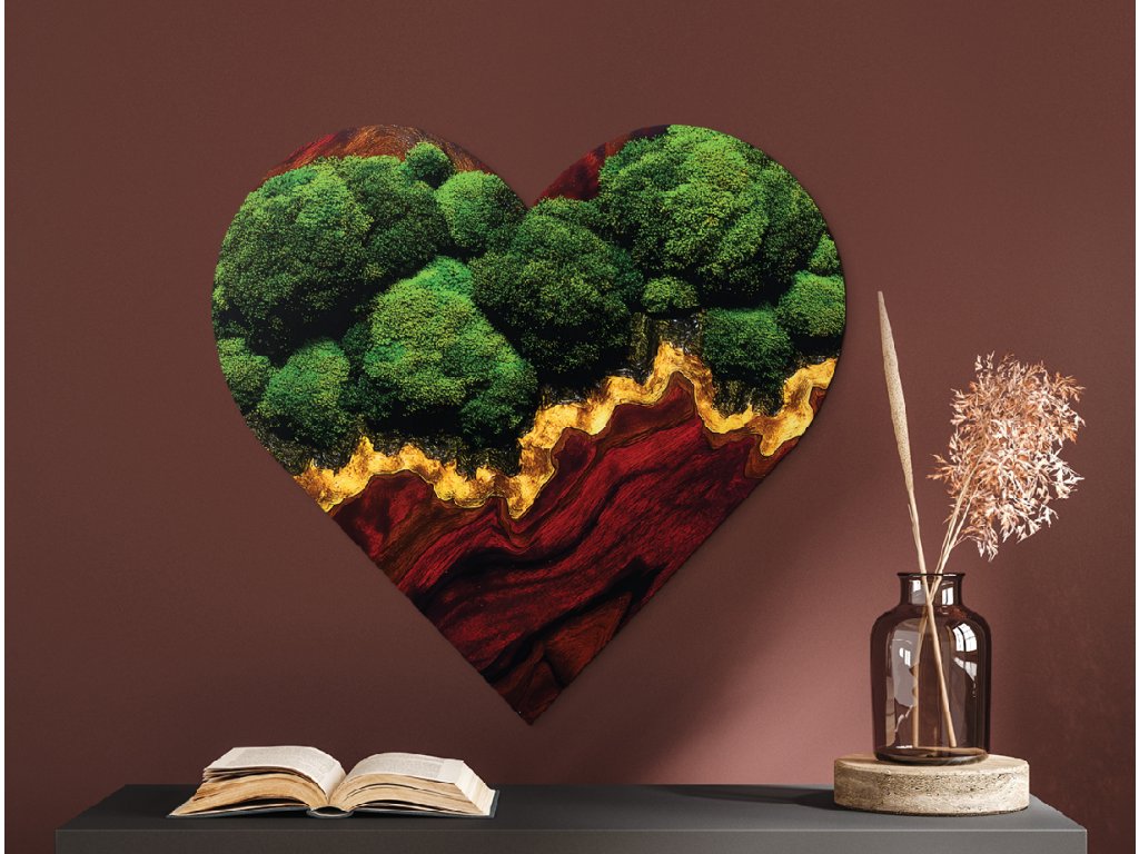 Srdcový mechový obraz Spojení – (UV tisk) přinese do vašeho interiéru dokonalou imitaci živého mechu. Díky moderní UV technologii získáte realistický 3D efekt bez potřeby péče. Tento obraz si zachová svěží vzhled po celá léta a stojí méně než klasická mechová díla. Vyberte si originální kousek, který spojuje krásu přírody s praktičností.