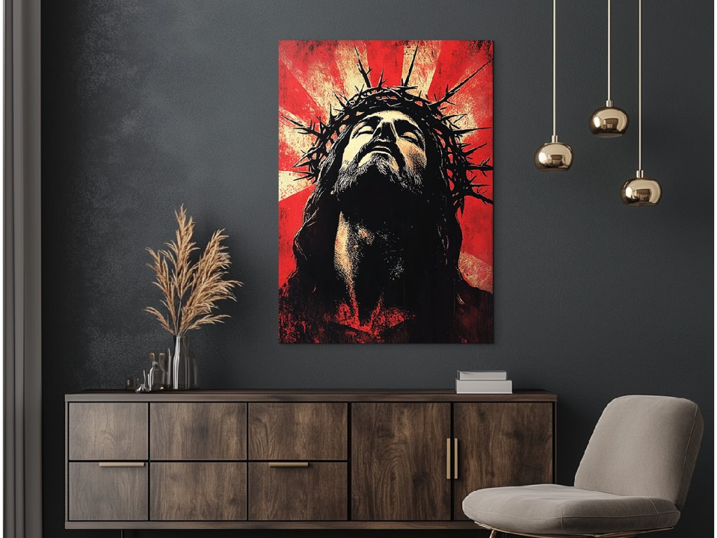 Obraz zachycuje tvář Ježíše Krista se zavřenýma očima, v posledním okamžiku před předáním ducha. Jeho výraz je klidný, smířený a soustředěný, s jemně zakloněnou hlavou, čímž vyjadřuje vnitřní souhlas s obětí.