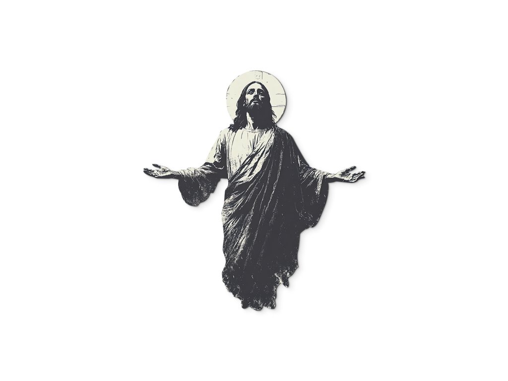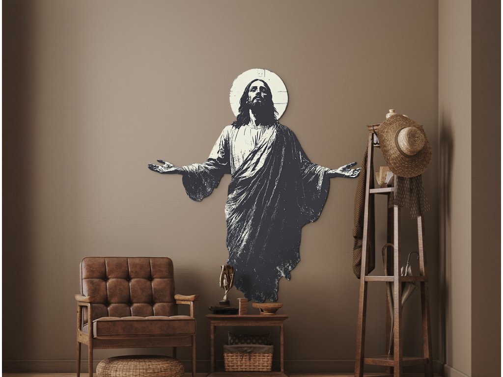 Obraz zobrazuje Ježíše Krista – ústřední postavu křesťanské víry, jehož život a poslání jsou základem učení o spáse a věčném životě. Ježíš, známý jako Boží Syn a Mesiáš, přinesl světu poselství lásky, odpuštění a naděje. Jeho ukřižování a vzkříšení jsou vnímány jako klíčový projev Boží milosti, kterou byla lidem nabídnuta možnost smíření a vykoupení.