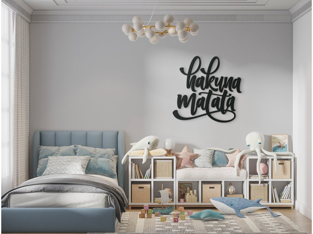 Nálepka Hakuna matata je nadčasovou dekorací jako stvořenou do moderního, ale i tradičně zařízeného interiéru. Nechte ji zazářit na barevné nebo bílé stěně v dětském pokoji. Výrok je známý zejména z pohádky Lví král a znamená Žádné starosti či problém.