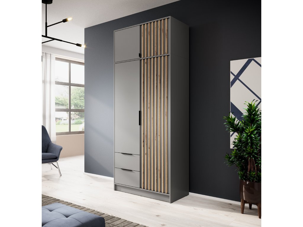 Nástavec Nelly 2D v elegantní kombinaci béžové (kašmírové) barvy a černých ozdobných lamel je ideálním doplňkem ke dvoudveřové šatní skříni ze stejné kolekce. Díky promyšlenému designu dokonale navazuje na spodní část skříně, čímž vytváří jednotný a harmonický celek. Za dvěma pantovými dvířky nabízí praktický prostor pro sezónní oblečení, lůžkoviny či méně používané předměty, které chcete uložit mimo dohled. Vyroben je z laminované desky s ABS hranami, doplněn o černé plastové úchyty, které zapadají do charakteru kolekce Nelly – funkční, nadčasové a stylové.