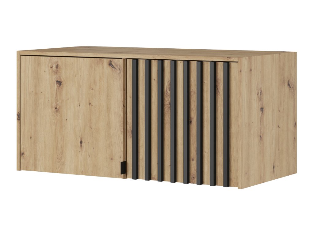 Nástava Nelly 2D je praktické rozšíření dvoudveřové šatní skříně z kolekce Nelly, navržené pro ty, kteří chtějí naplno využít výšku místnosti bez kompromisů ve stylu. V provedení dub artisan doplněný o výrazné černé lamely plynule navazuje na skříňku pod ním, čímž vytváří designově ucelený a harmonický celek. Za dvěma pantovými dvířky se ukrývá praktický prostor, ideální pro uložení sezónních věcí, ložního prádla či jiných doplňků. Nástavec je vyroben z laminované desky s ABS hranami, vybaven černými plastovými úchyty a stylovým vertikálním lamelovým profilem.