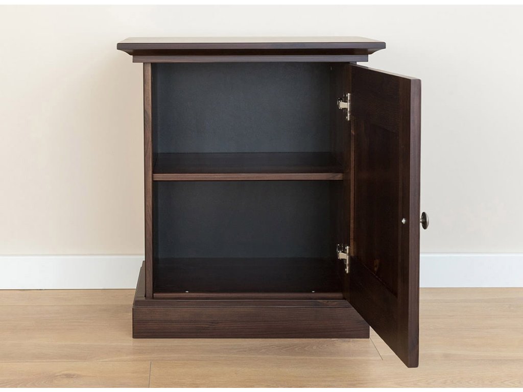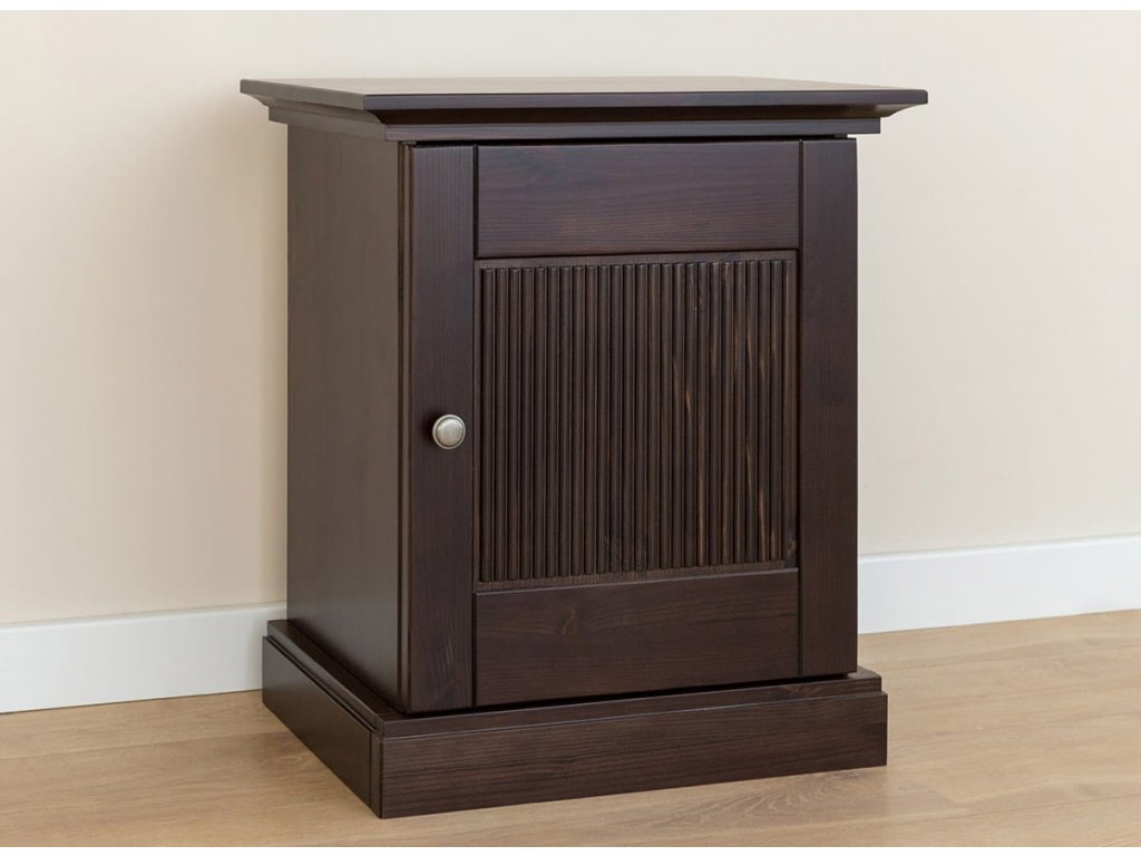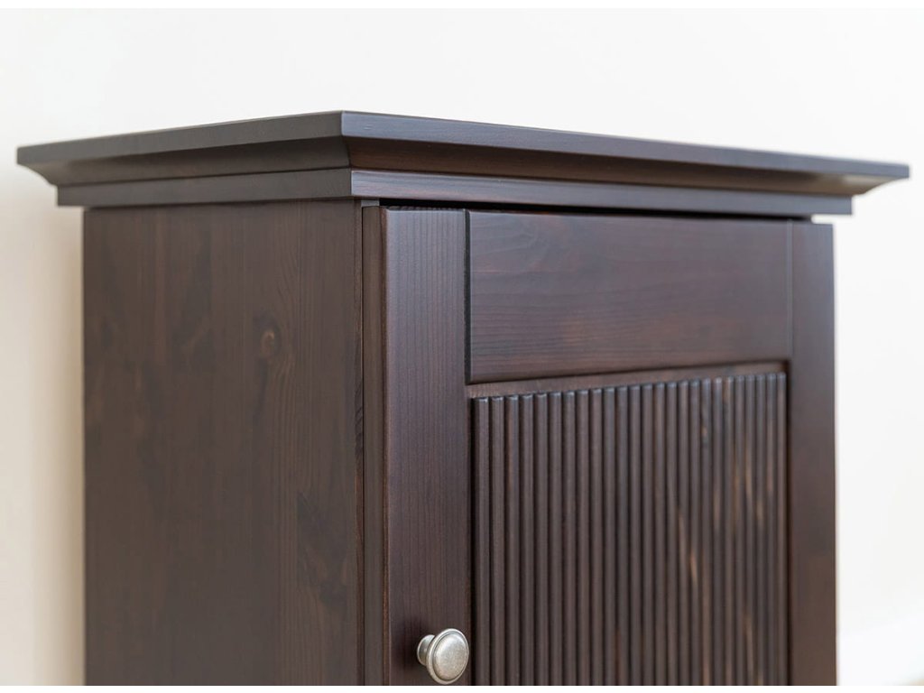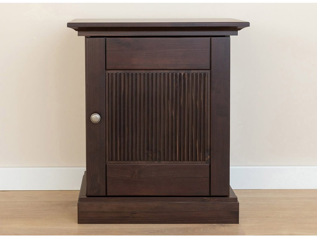 Noční stolek z masivu Rosella P je funkční a zároveň estetický kousek navržený s ohledem na detaily a pohodlí při používání. Je vyroben z masivní borovice, povrchově upravené ekologickou barvou na vodní bázi se 70% krytím, což zvýrazňuje přirozenou kresbu dřeva a prodlužuje jeho životnost. Tabakový tón vnáší do ložnice teplou a zklidňující atmosféru.