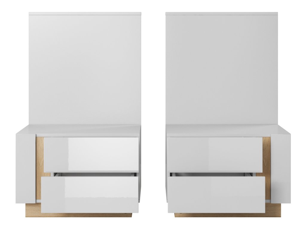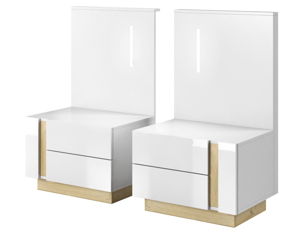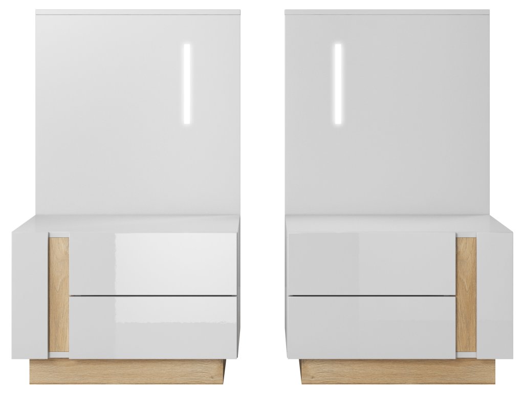 2x Noční stolek s osvětlením Arcon - bílý lesk / dub grandson