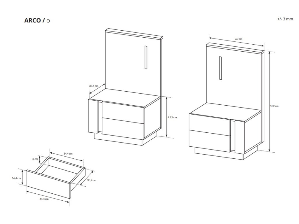 Noční stolky Arcon jsou navrženy jako nedílná součást postely ze stejné kolekce a společně vytváří V balení se nacházejí dva stolky – levý i pravý, které se jednoduše připevní přímo k čelu postele.